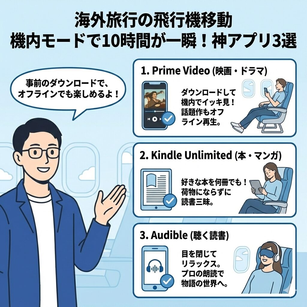 なぜAmazonアプリが海外旅行の飛行機での過ごし方に最強と言えるのか?