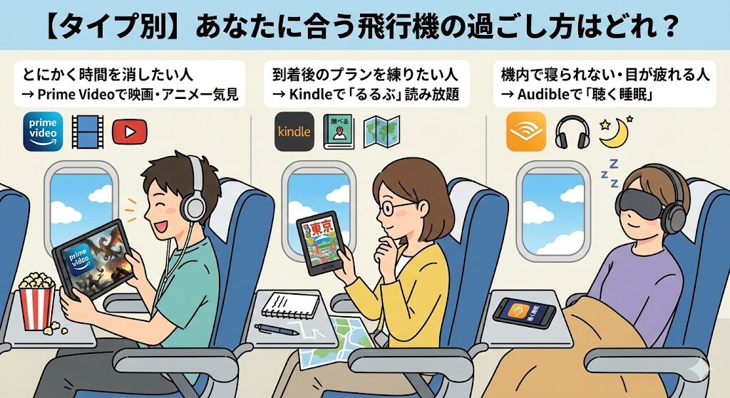 【タイプ別】あなたに合う飛行機の過ごし方はどれ?