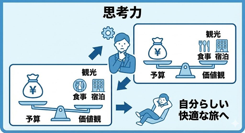思考力・・旅を快適に予算配分などを価値観に沿って考える力
