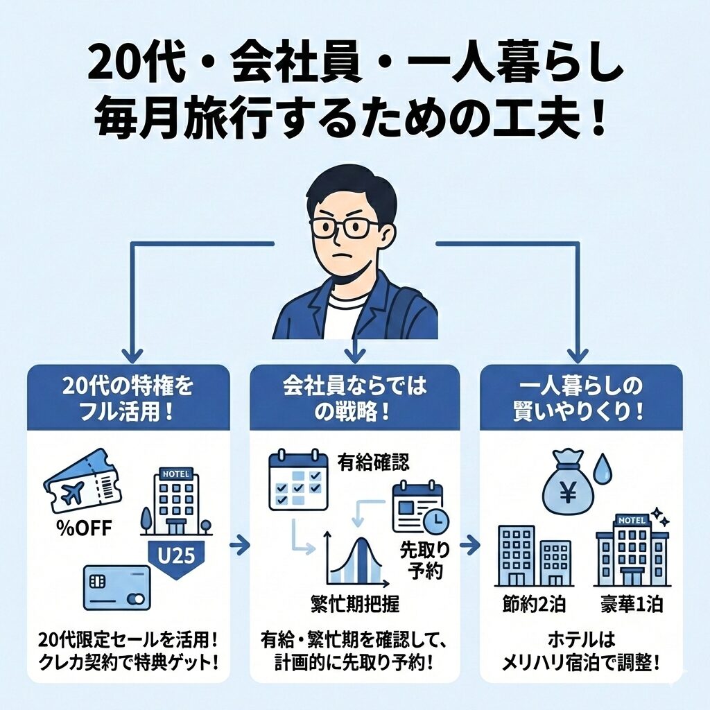 もしあなたが毎月したいというのであれば、毎月旅行するために様々な工夫が必要です。